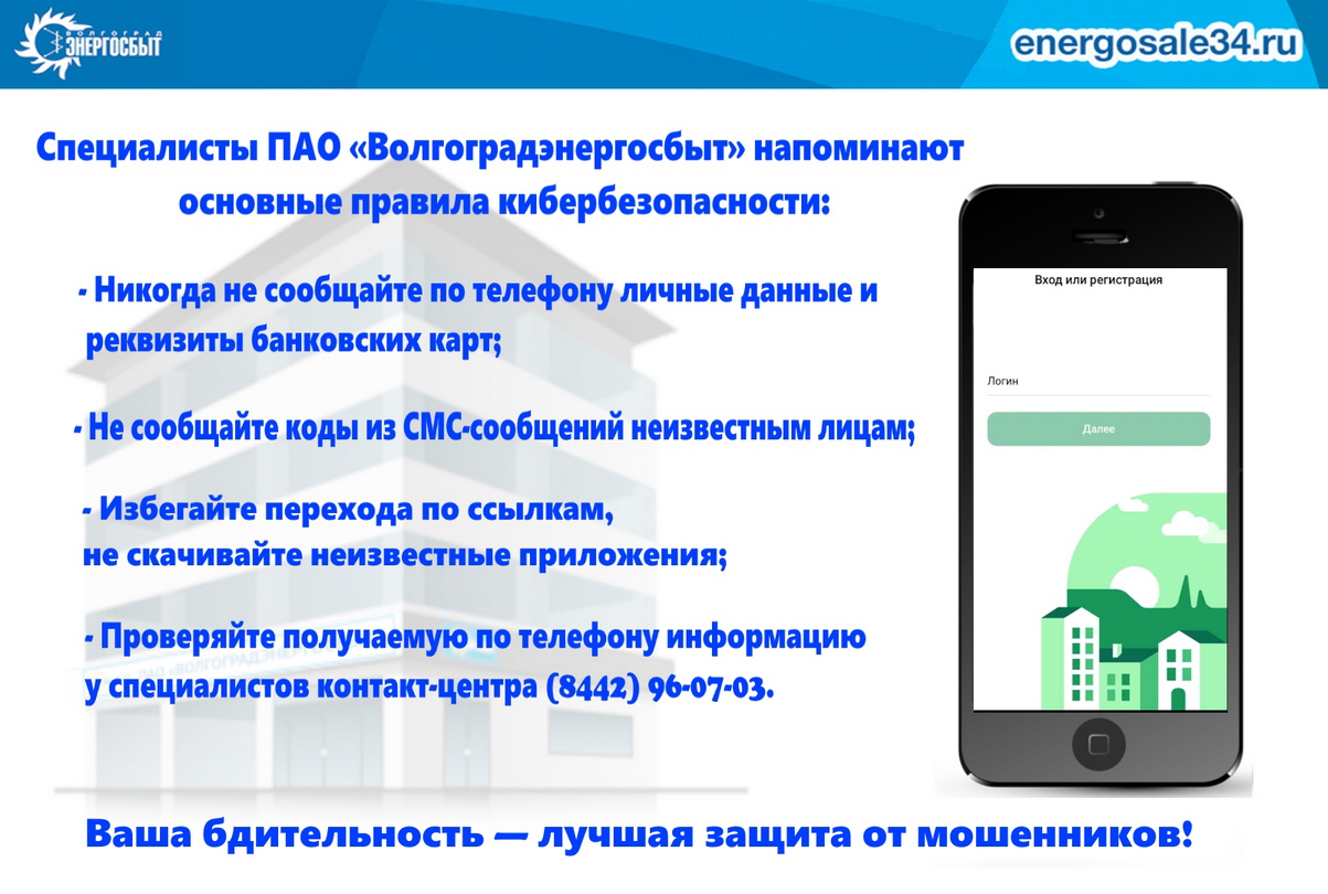 Специалисты ПАО «Волгоградэнергосбыт» напоминают волгоградцам об информационной безопасности